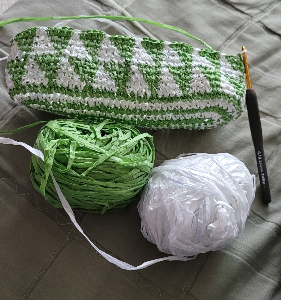 상단은 면실 한가닥 합사해서 느낌도 살짝 폭닥하고 하단 배색부분은 종이실 마찰 소리가 차륵차륵 난다.