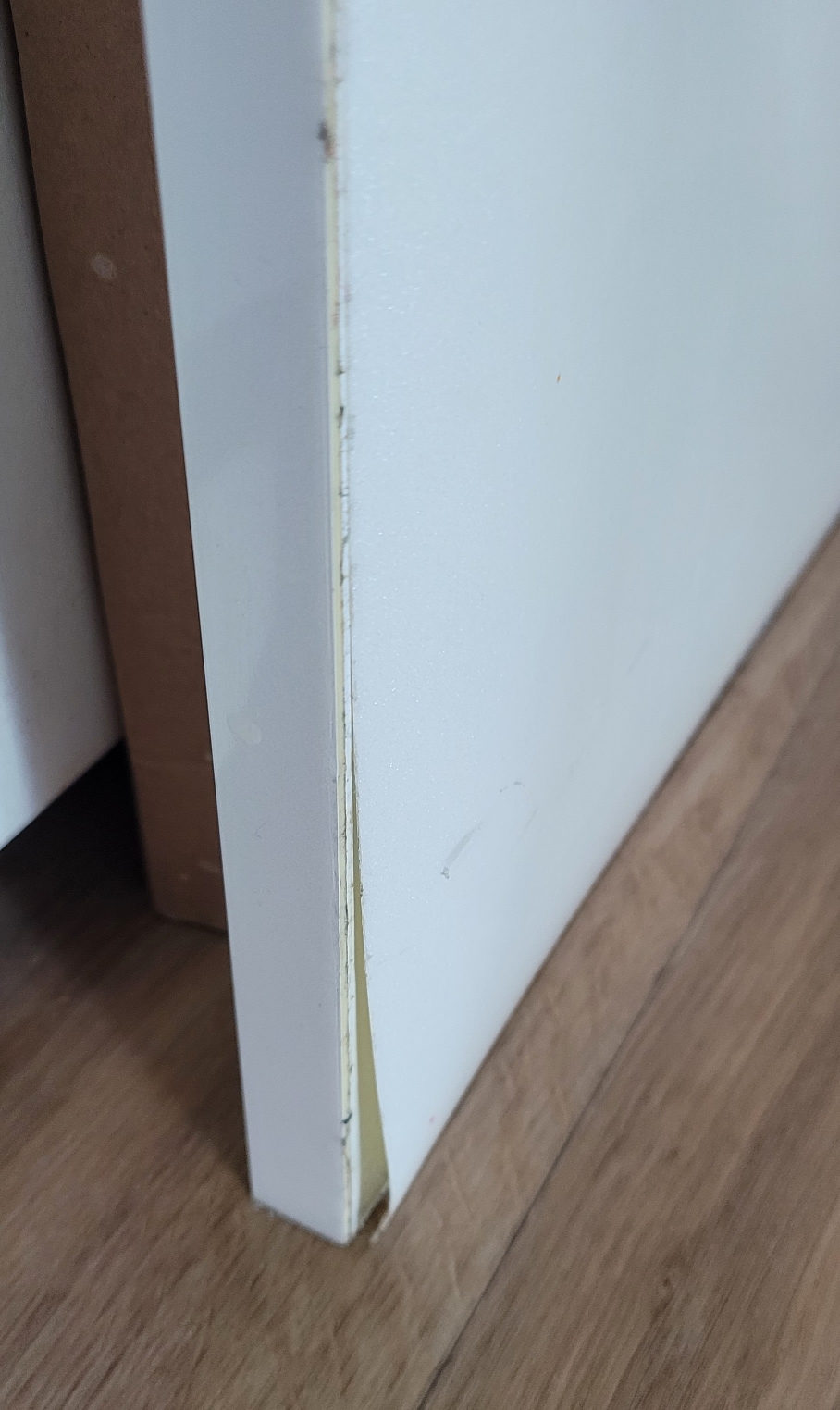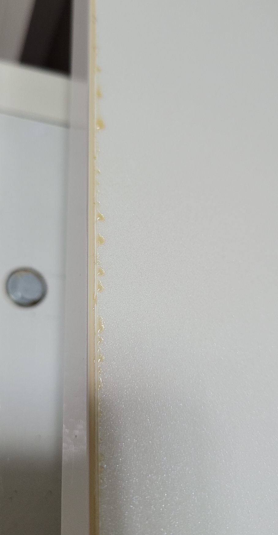 13년 6월에 시공한 한샘 주방 문짝들에서 재작년인가부터 조금씩조금씩 싱크대에서 노란 액이 흘러내리기 시작했는데 작년말에 아주 심각하게 흘러내리고 급기야 필름이 떨어져 나가기 시작했다.