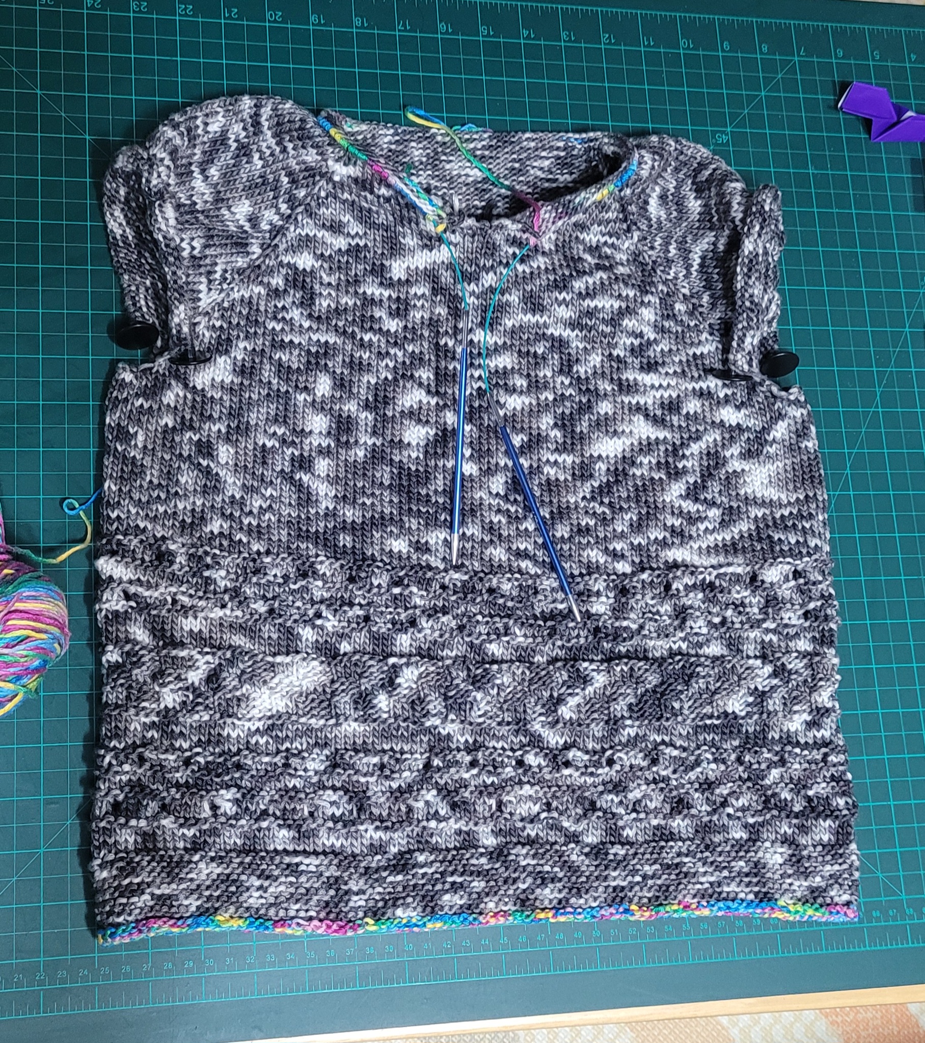 팔을 달려다가 실도 모자르고 해서 조끼로 강제 변경되었다.