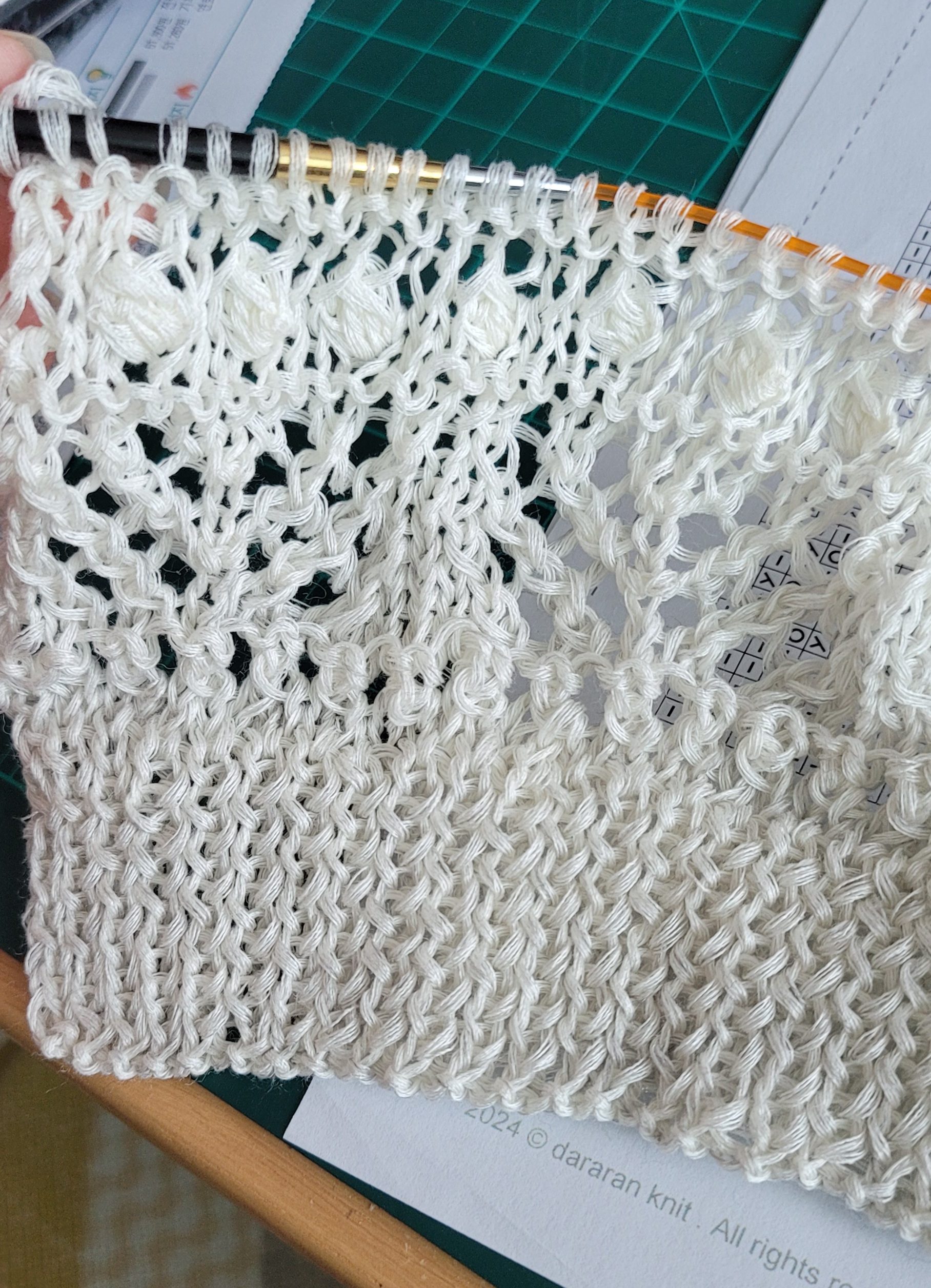 마음에 걸려서 다시 풀고 뜨자한 게 이사단이 났다.