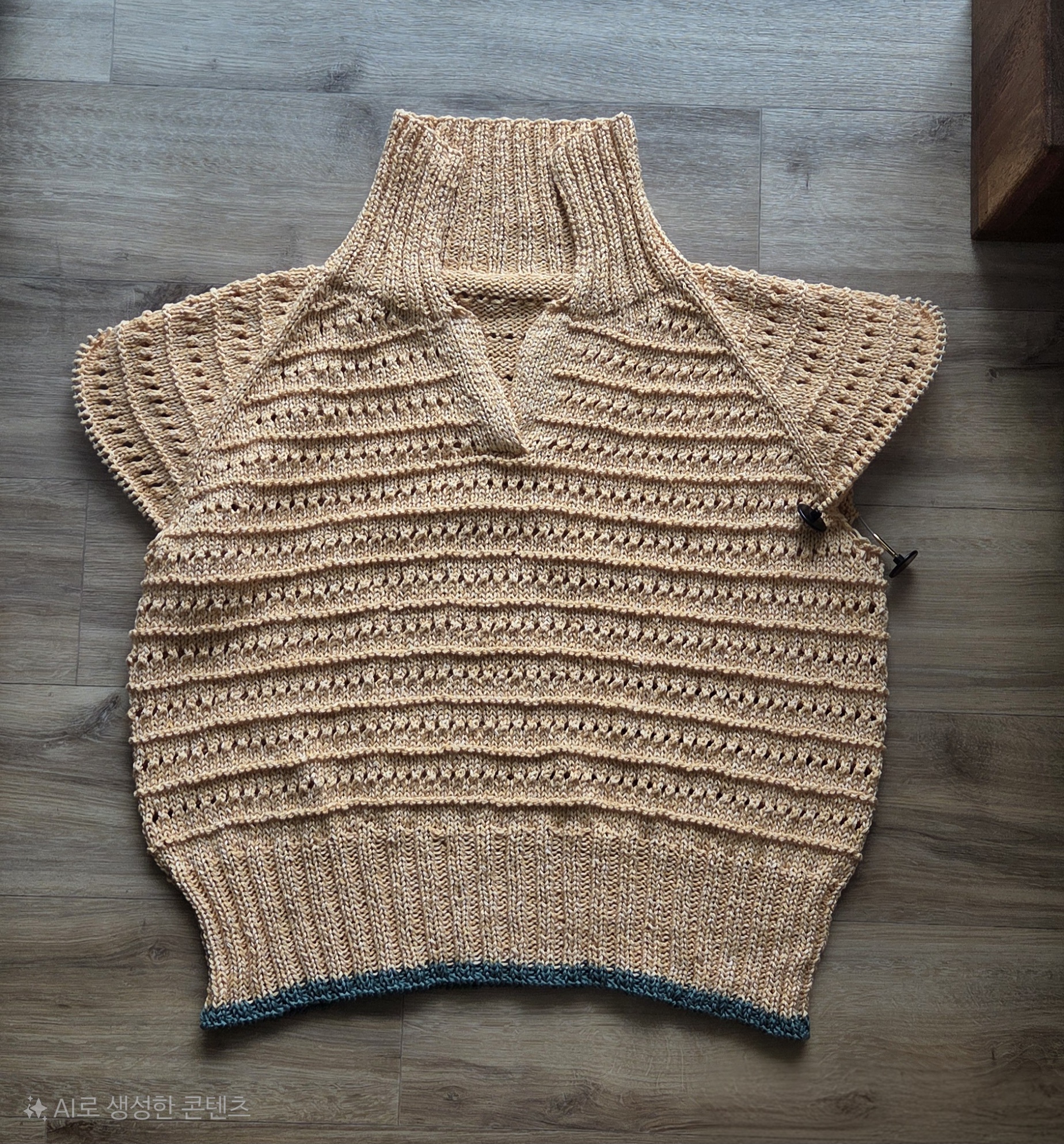 카라부분은 안하고 그냥 입으려다 풀어놓은 배색실이 남기도 했고 원작대로 떠보자해서 했는데.. 안했으면 큰일날 뻔 했다.