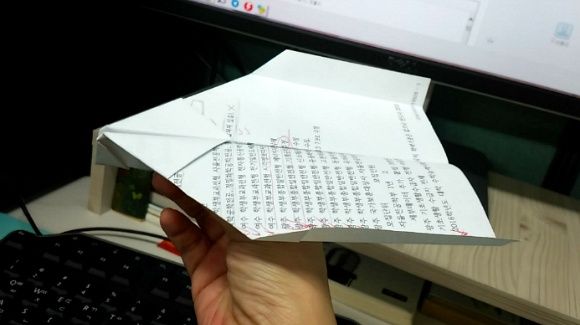 오징어비행기까지 접고 다 날려봤는데 가오리 비행기가 제일 잘 난다.