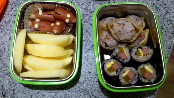 사과는 아빠가 먹기 좋게만 썰어서 넣어줬다.