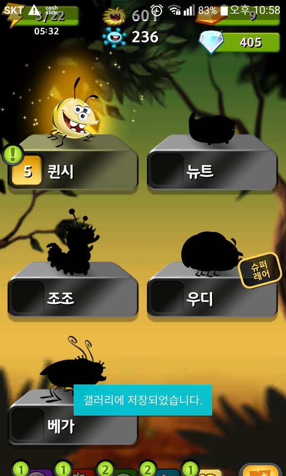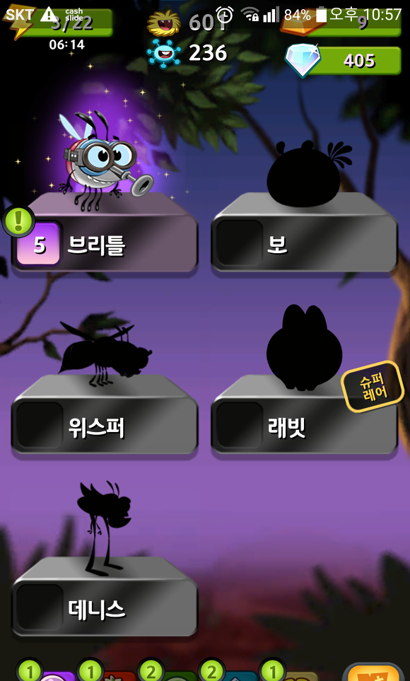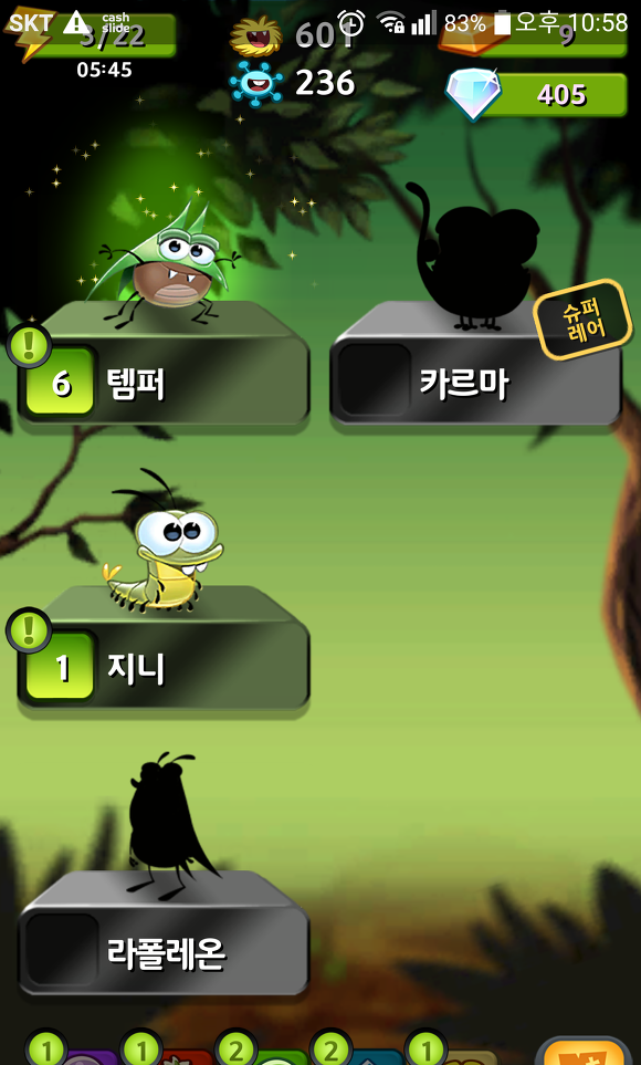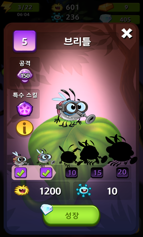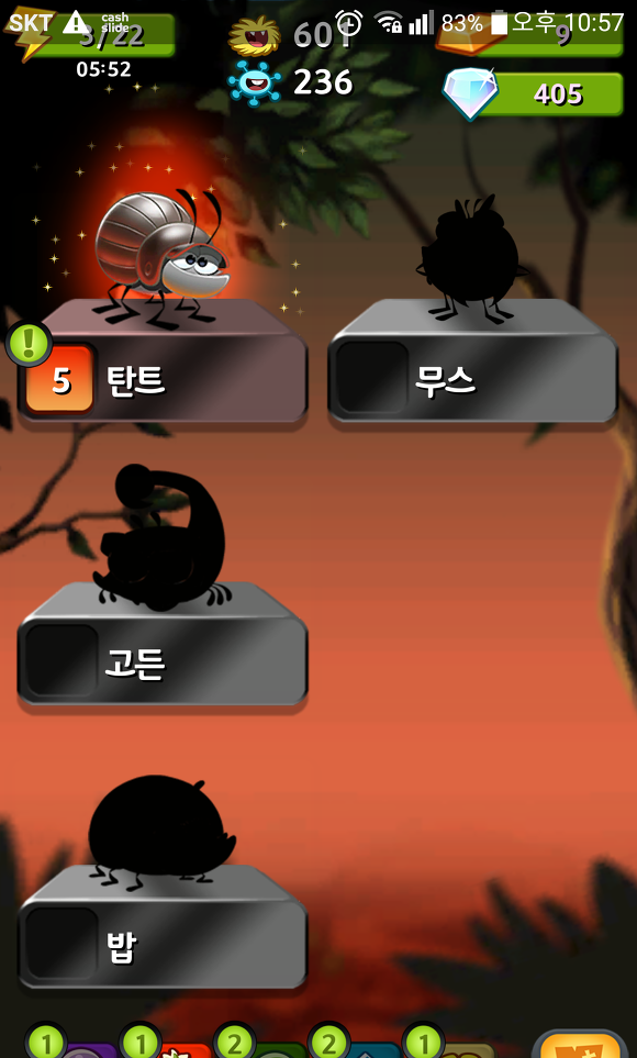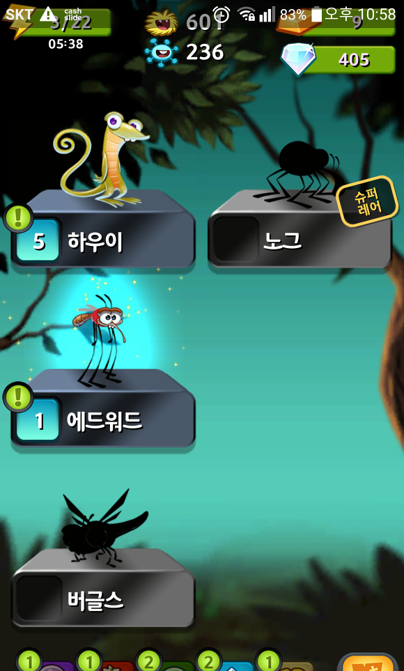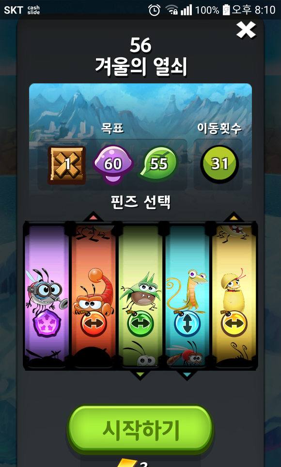 게임을 시작하기 전에 현재 가지고 있는 벌레들을 선택할 수 있다.