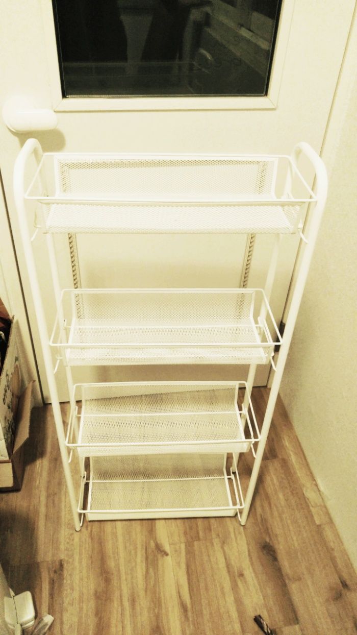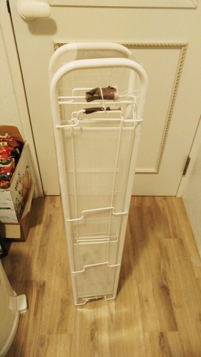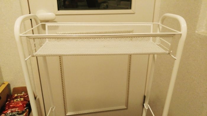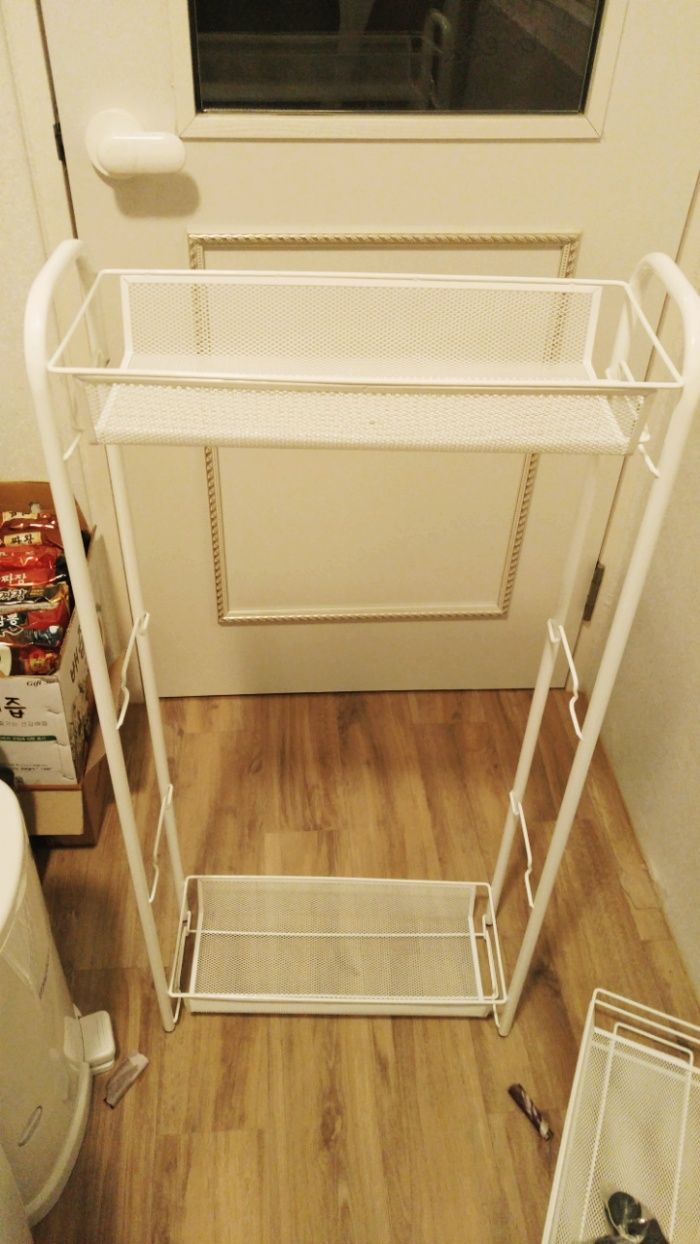 구성사진은 공간문제로 못찍음.좌우기둥 2개, 선반? 4개, 바퀴4개가 끝.