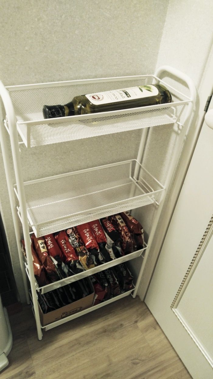 ** 현재는 맨 위에 주방세제(리필용)와 저 올리브오일, 그리고 양파가 얹어져있고