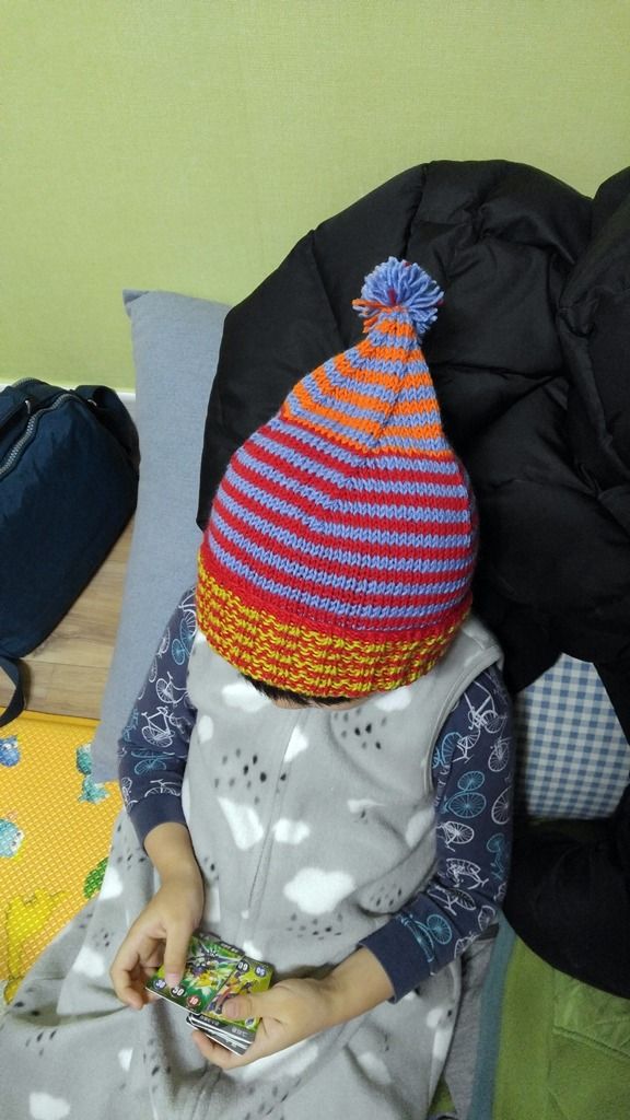 먼저 뜬 미아방지 모자는 너무 딱 맞아서 다 풀고