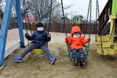날씨가 따뜻했으면 아이들이 놀기 좋았겠지만 아무 막힘없는 곳에 나무로 만들어진 놀이터만 있어서