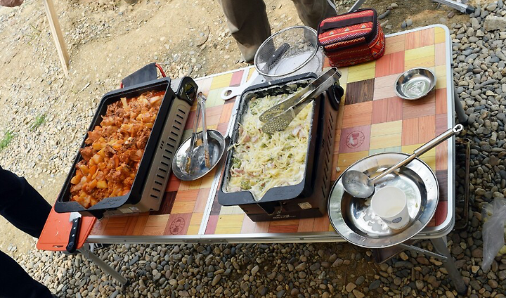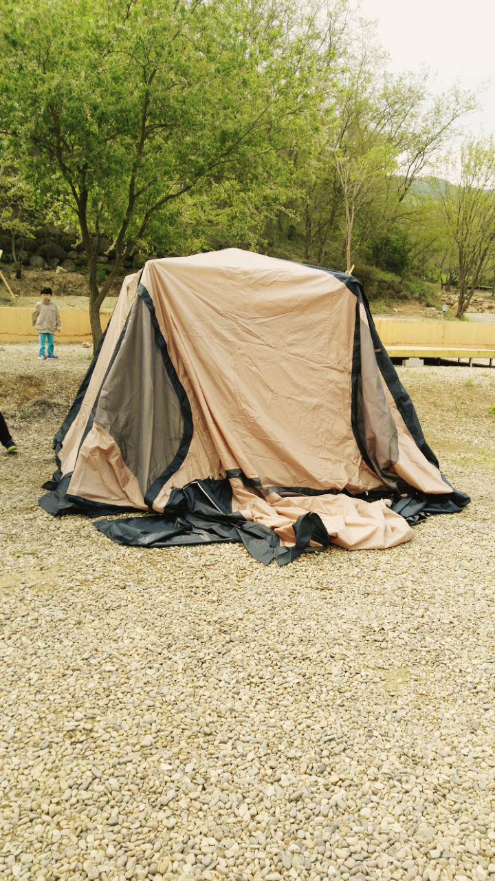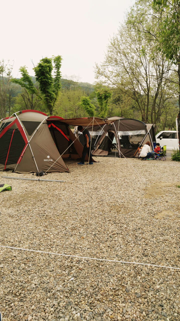 차를 사이트 근처에 댈 수 있어서 짐 꺼내기엔 편하다. 그게 큰 장점이기도 하지만 애들이 이리저리 다니는 상황에서 차가 다니는 건 살짝 단점이기도 하다.