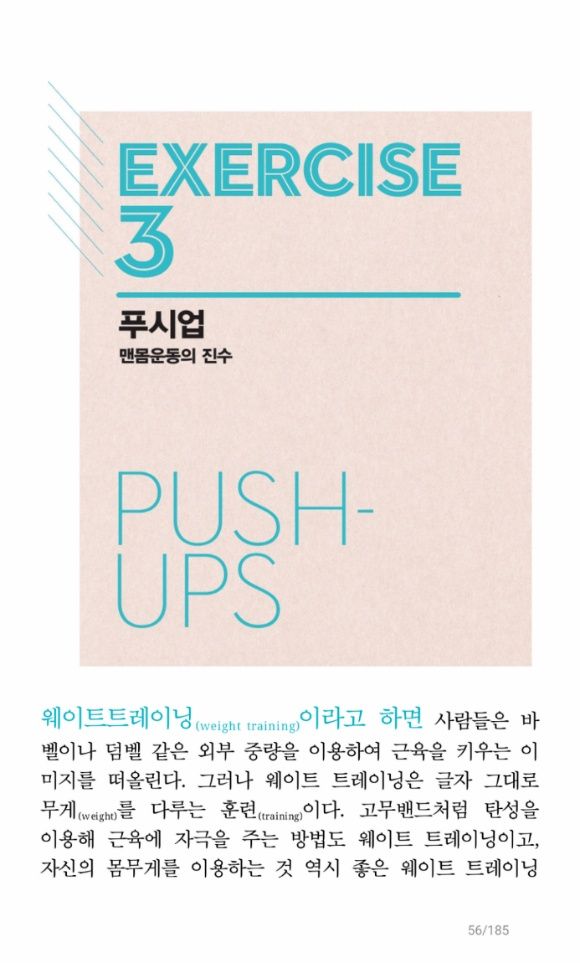 이 책은 아름다운 몸보다는 진짜 "체력"을 위한 간단한 운동만을 담고 있고
