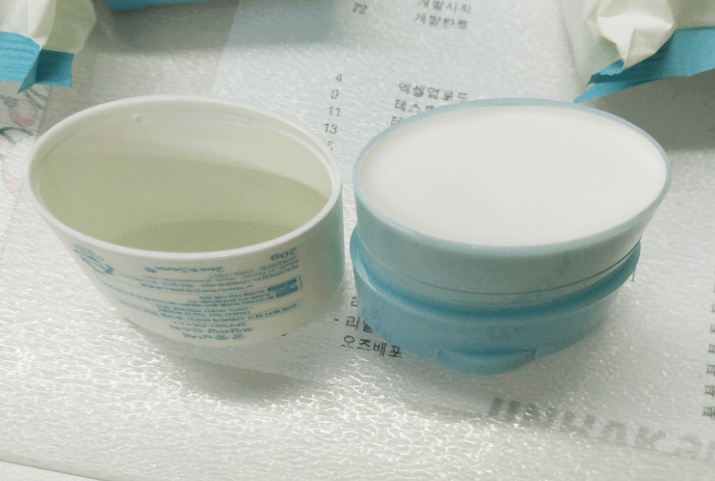 처음 발랐을 때는 타원형 모서리마다 허옇게 덩어리져서 발라져서 안 좋더라.