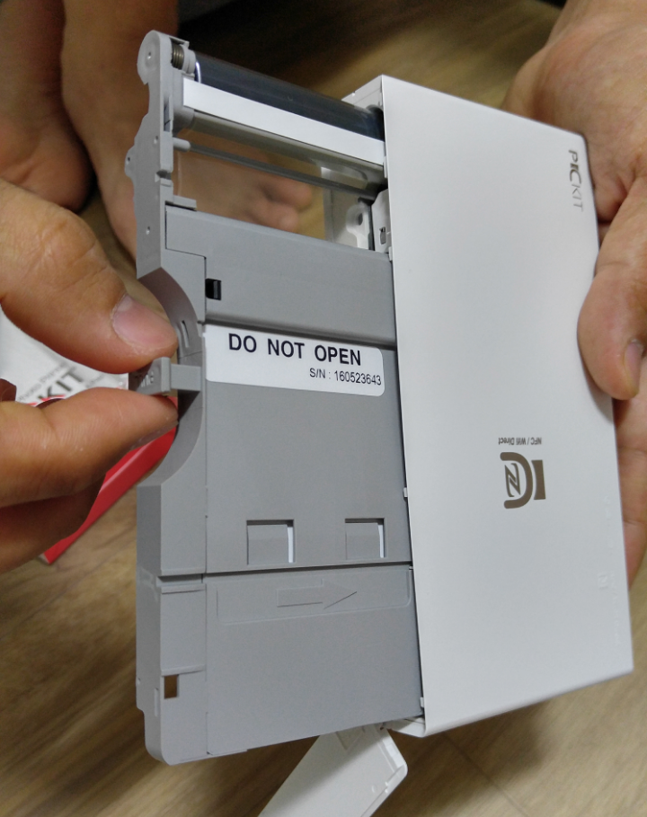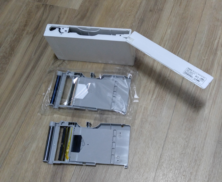 인쇄방식은 카트리지 속의 내지가 네번 들어갔다 나왔다 하면서 인쇄하는 형식.