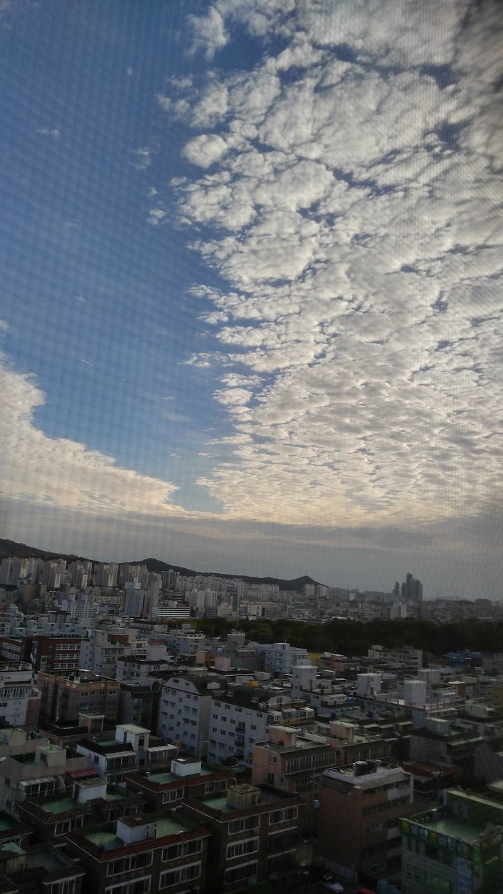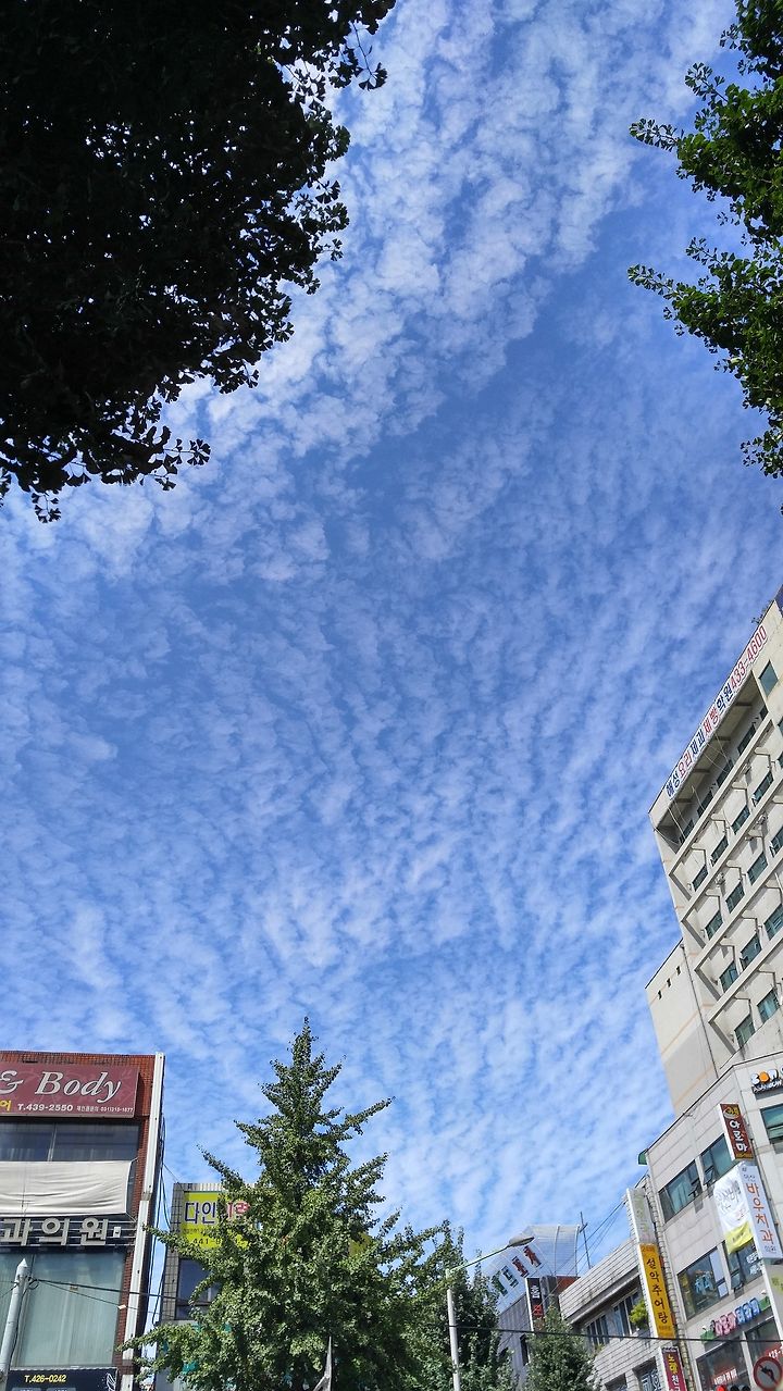 아, 오늘따라 하늘이 뭔가 채도를 높인 파랑과 양떼구름으로 말이 안되게 멋있다.