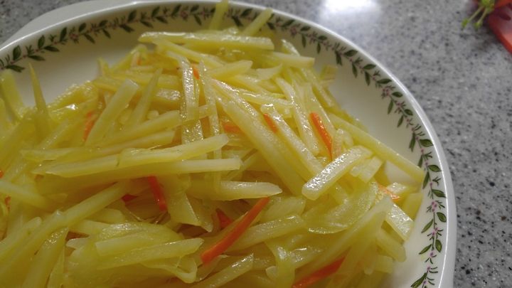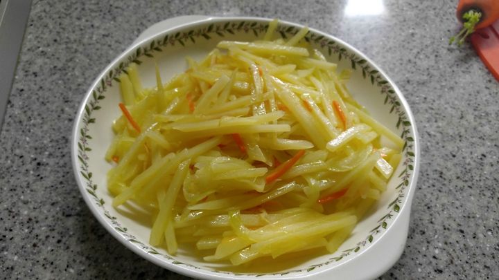 제일 두꺼운 감자채 하나 집어먹어봐서 익었으면 완성