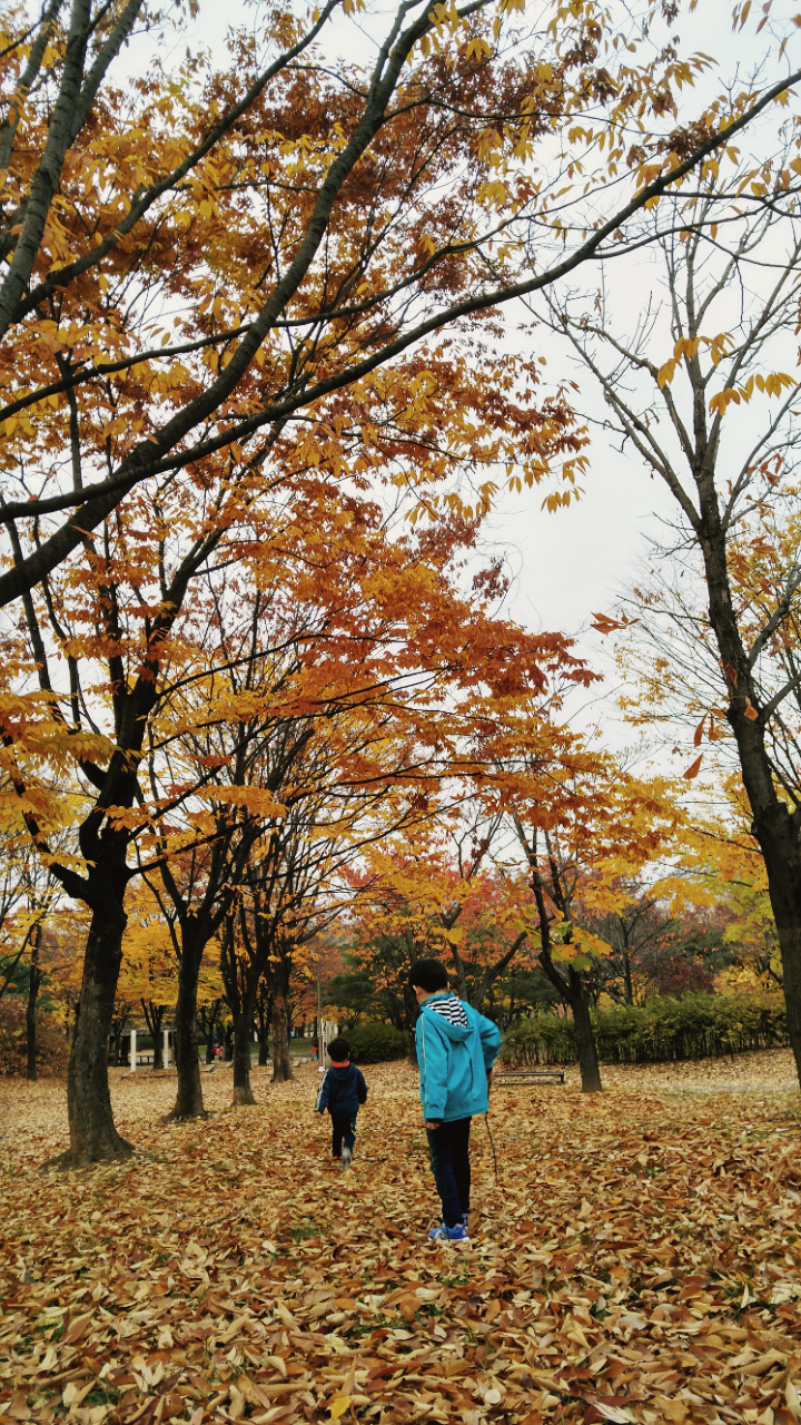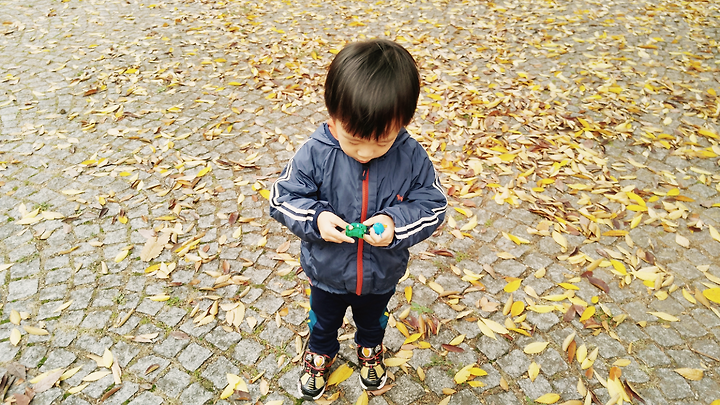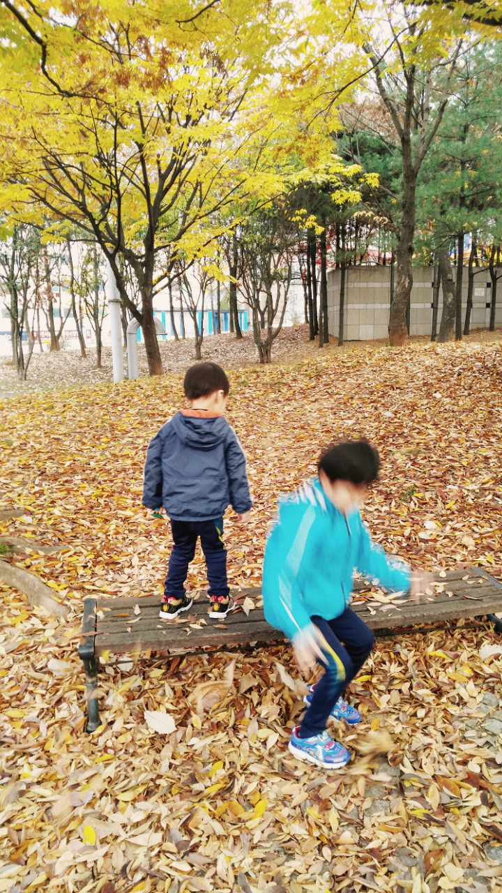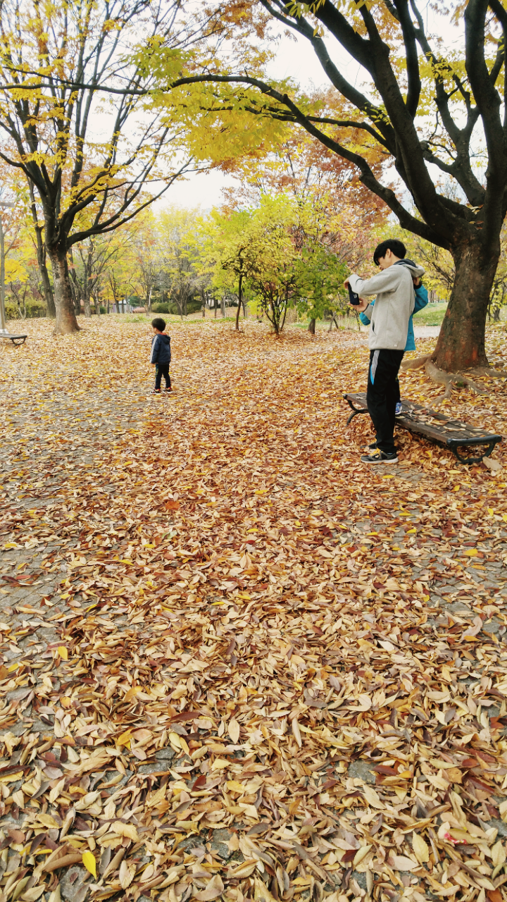 그저 놀이터나 나가 노는게 주말일과의 마지막이라 생각했는데 점심을 나가서 먹고 돌아오는 길, 집 근처 공원으로 향하는 아빠님 덕분에 가을의 추억을 쌓았다.
