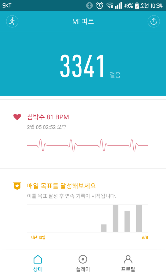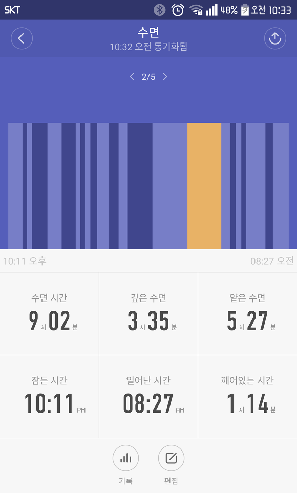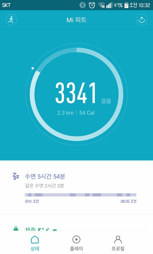 이거 외에 수면체크도 있는데 이걸 확인하려면 핸드폰에 앱을 설치해야 한다.