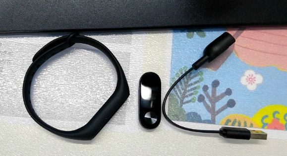 손목에 차기 위한 밴드와 가운데 버튼 달린 게 메인, 그리고 충전기다.