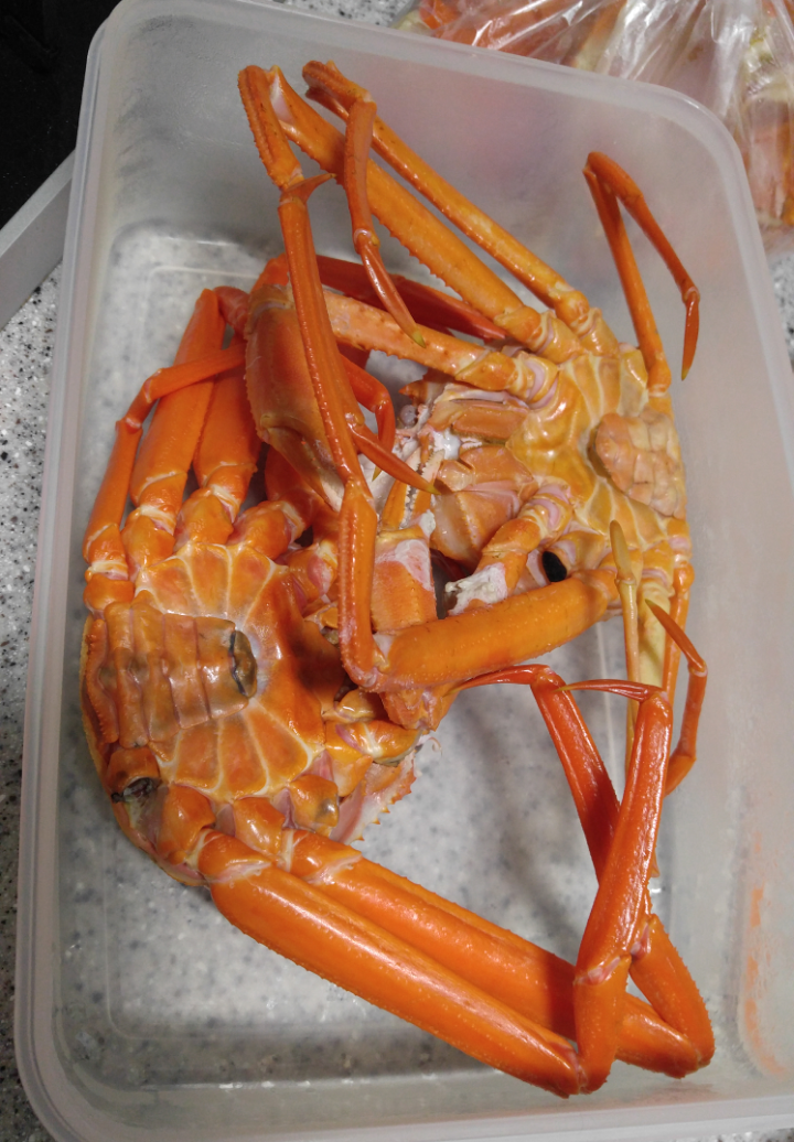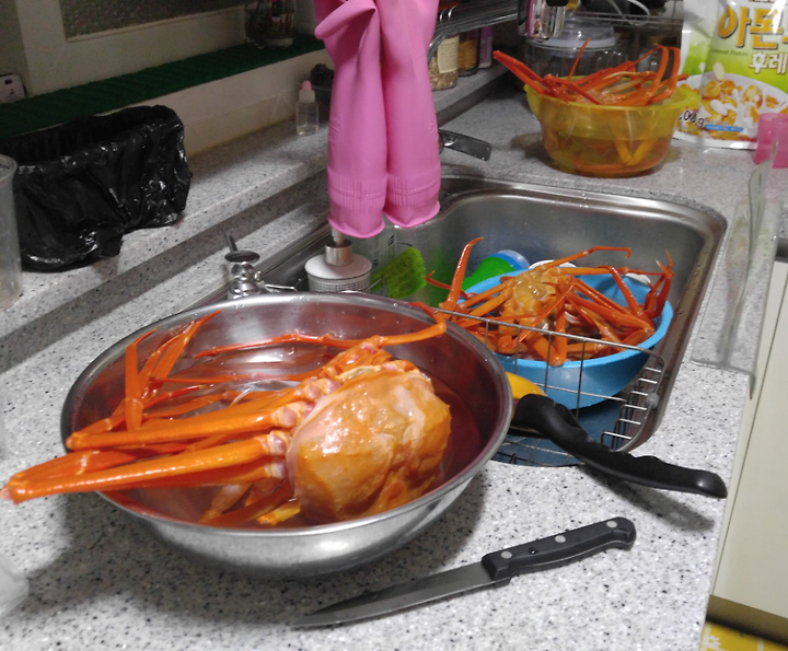 저녁 먹고 들어와서 홍게 두마리를 해치운거다.