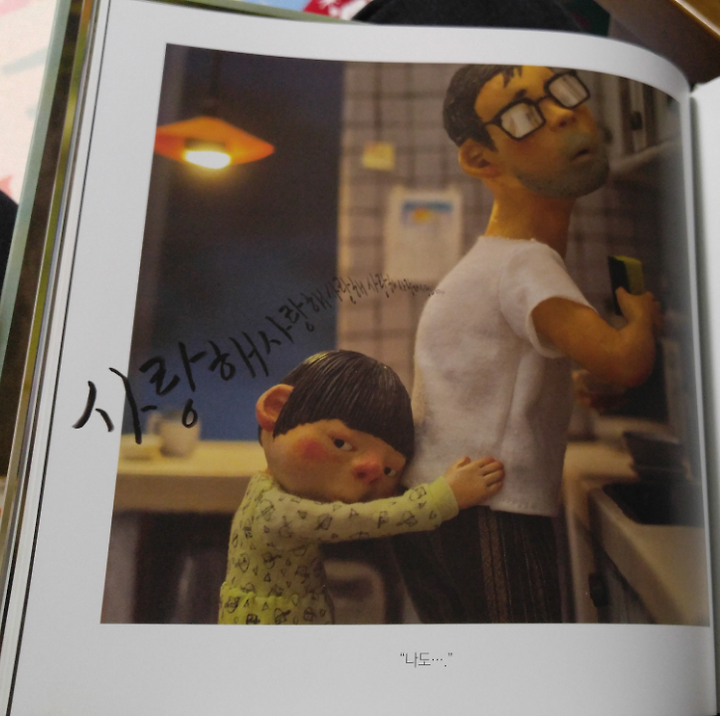 아빠의 잔소리 속에 숨어있는 소리를 듣고 나도..라고 수줍게 말하는 동동이 모습이 너무 귀엽다.