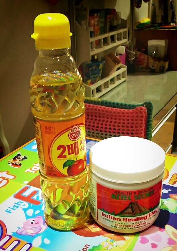 재료는 아즈텍 시크릿, 그리소 식초(혹은 탄산수)