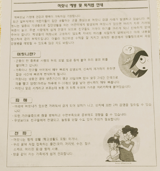 언제인지, 아이들 사이에 생겨서 문제란 소릴 들었는데 아직도 있나싶었던 그 머릿니.