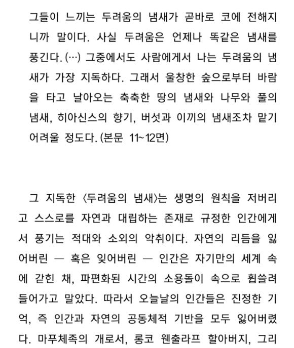 두려움에 지독한 냄새를 풍기는 인간이라서 부끄러워졌다.