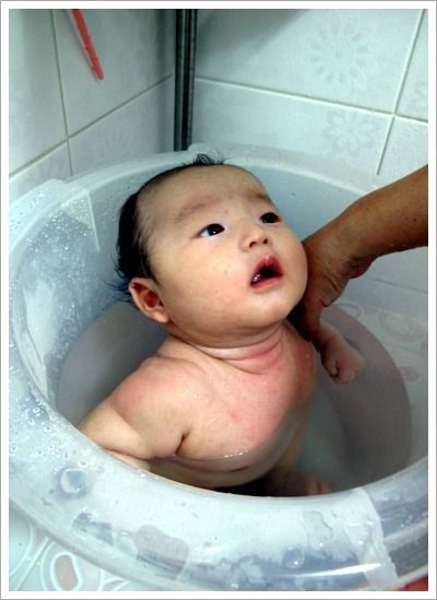 아이의 첫 욕조로 대부분 세수대야를 선택하지 싶다.