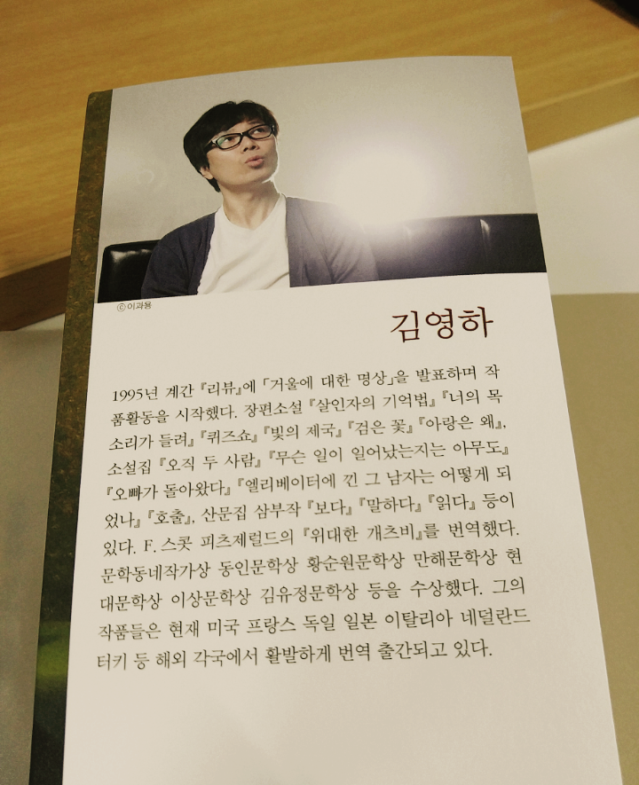 글 내용을 고려하면 작가의 표정이 뭔가 굳어있어야 할 것 같은데