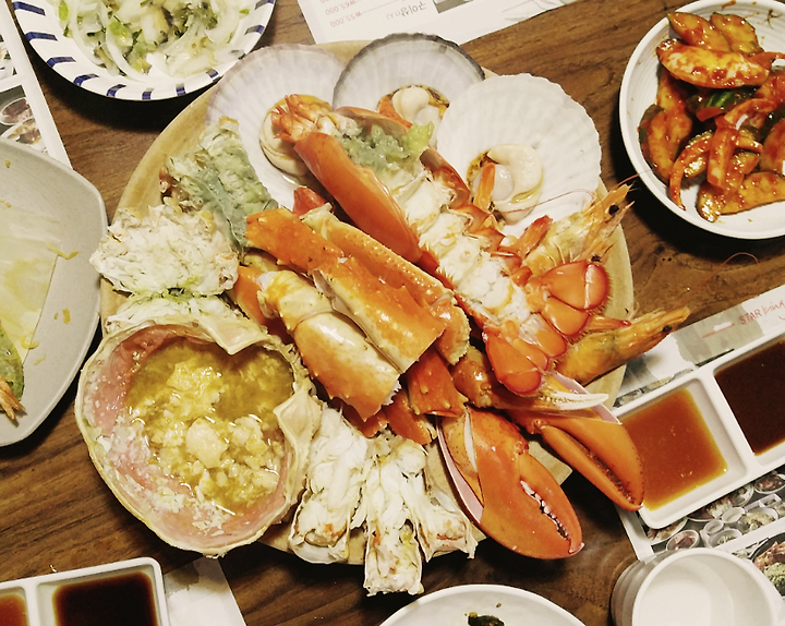 전에 애들 데리고 랍스터구이를 먹은 적이 있었는데, 그때 그렇게 짜고 조직이 단단해서 애들이 잘안먹길래 랍스터는 원래 그런가?했었더랬지. 근데 찜을 먹어보니 이게 우리 입맛에 더 낫더라.