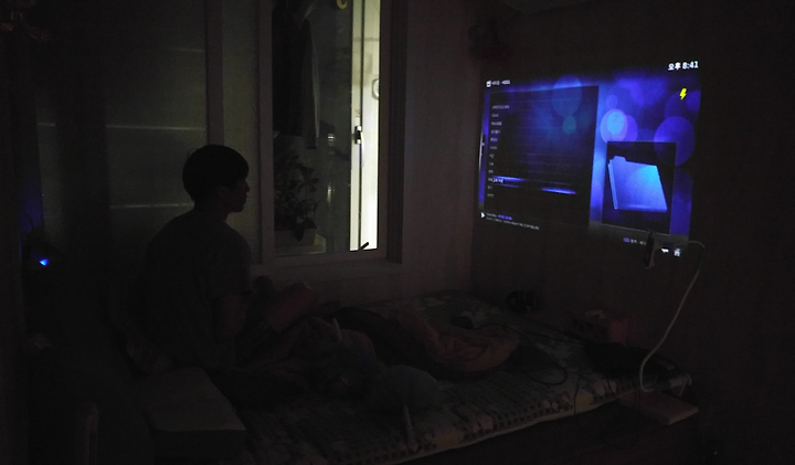 바로 가벽에 빔 올려놓고 누워서 영화보기.