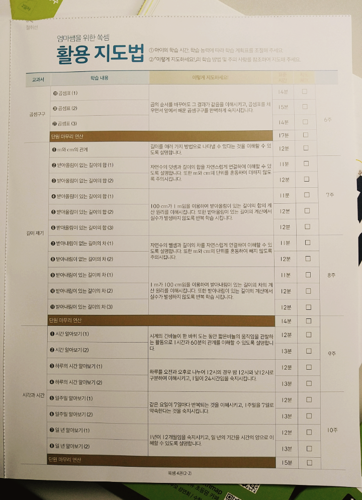 그리고 쏙셈2-2를 월요일부터 시작할 예정.