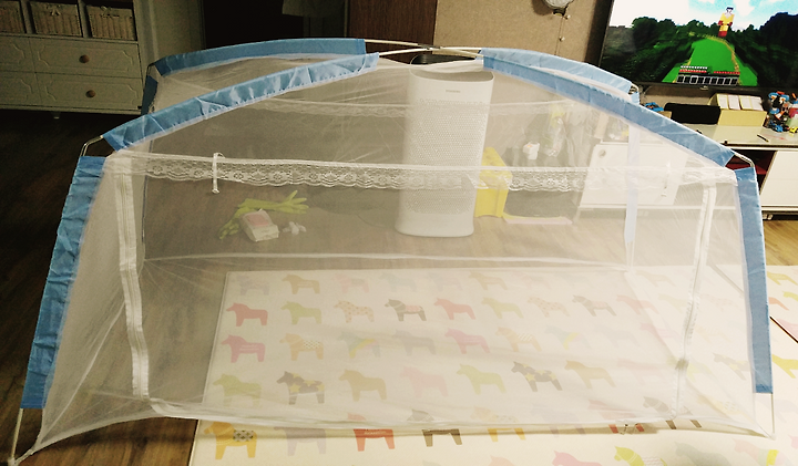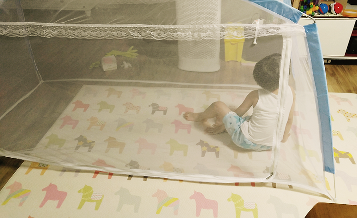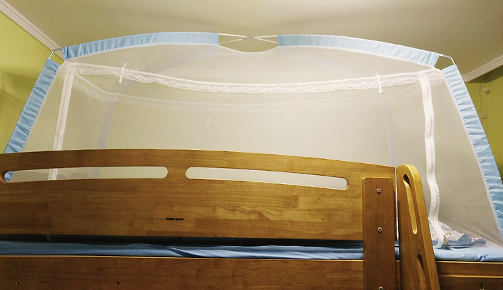 그리고 오늘 새벽 큰아이가 모기에 물리고 급하게 모기장을 침대에 설치?했다.