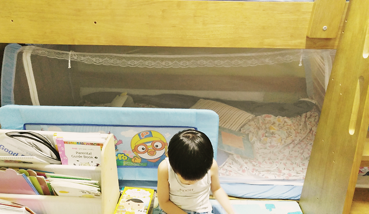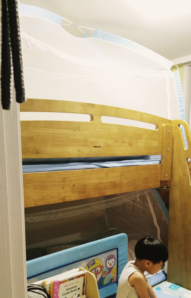 작년 여름까지 이층침대에 사각모기장을 쳐줬었다.
