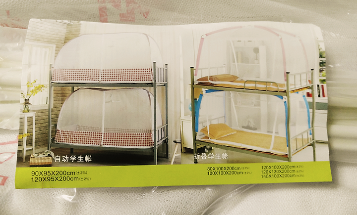 중국산 이층침대용 모기장은 높이가 95센티정도 되는듯. 근데 가격대가 25천원부터 있다.