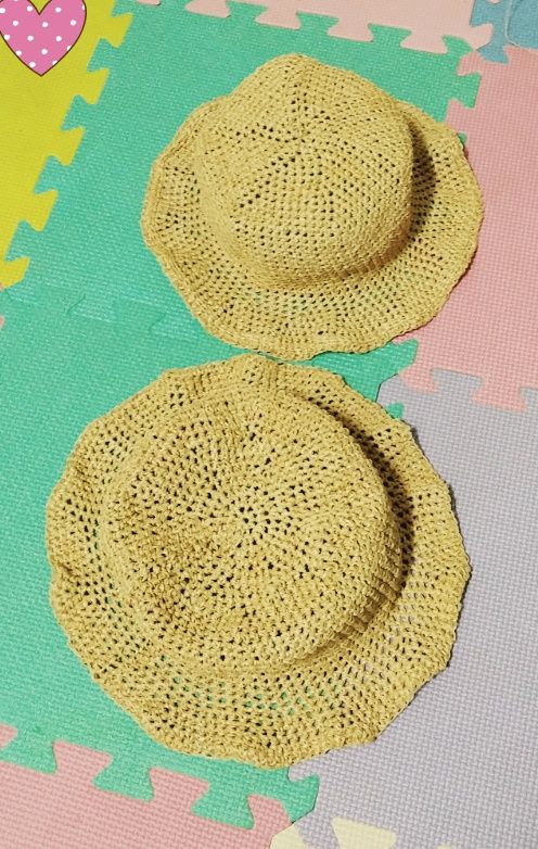 대략적인 사이즈 비교긴 한데 큰모자 안에 작은 모자가 쏙 들어간다.