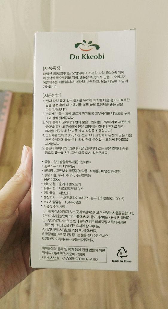 줄눈에 싸악 짜서 헤라로 살짝 긁어내라고 하니 일단 줄눈에 맞게 짜본다.
